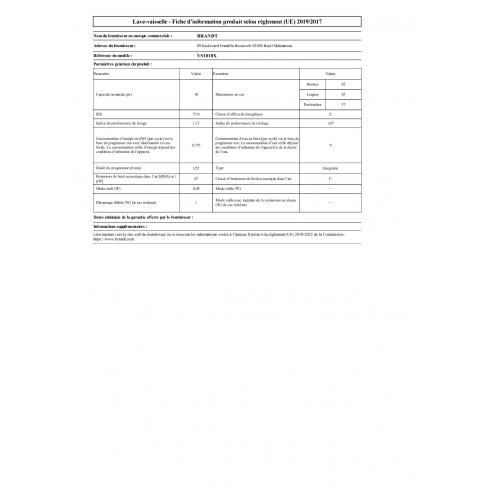 | Conso. d’énergie par cycle en programme éco (kWh) | 0.755 |