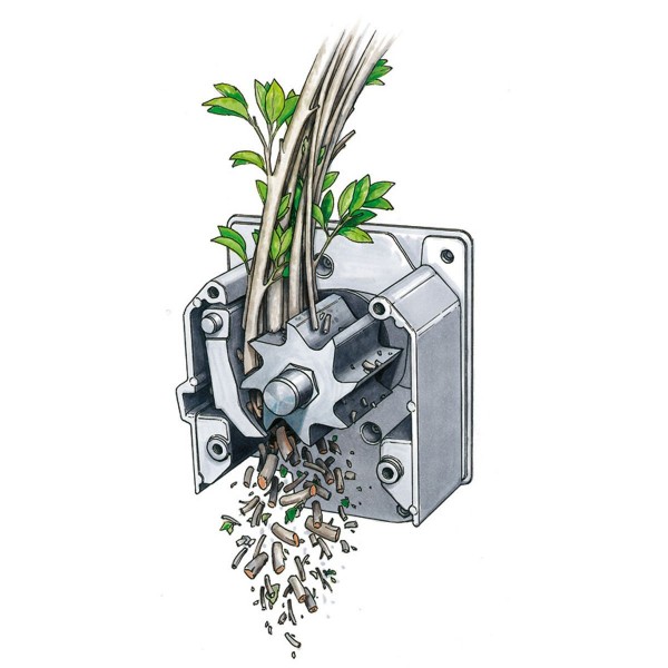 Trémie ouverture en forme de trèfle, spéciale branches ramifiées – éjection des déchets avec déflecteur
