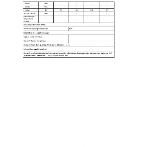 | T°C recommandée pour stockage optimisé des denrées alimentaires dans compartiment 4 étoiles (°C) | -18 |