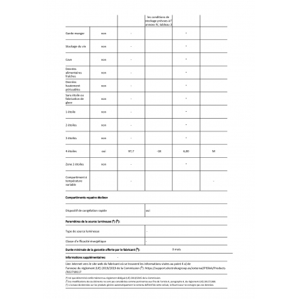 | Volume du compartiment 4 étoiles (L) | 98 |