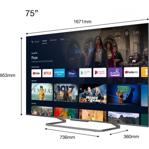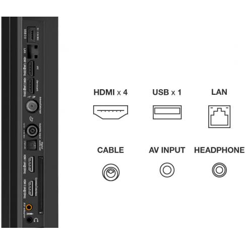 Applications Netflix, YouTube, Amazon Prime & More, Google Play Store, Réseaux sociaux, Navigateur internet, Smartphone / Tablette support, Lecteur multimédia USB, Sous titrage, Mode jeu, Mode sport, Mise en veille programmable |