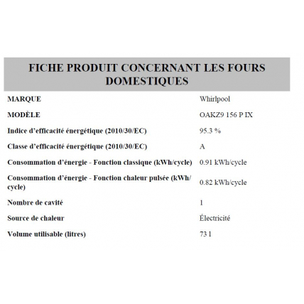 Four pyrolyse WHIRLPOOL OAKZ 9156 P : Caractéristiques techniques