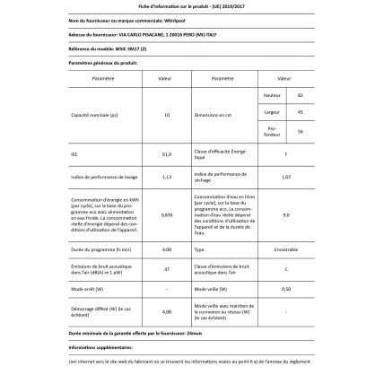 Le four pyrolyse WHIRLPOOL OAKZ 9156 P est un four à pyrolyse encastrable. Commercialisé en acier inoxydable, il possède une grande cavité d’une capacité de 73 L. Idéal donc pour cuire même les plats les plus volumineux : tajine, viande de grosse pièce, etc. tout y passe. Du label énergie A, sa consommation d’énergie est de 0,91 kWh en mode conventionnel et de 0,82 en mode chaleur tournante. Son mode de nettoyage « pyrolyse » favorise la décomposition des graisses et salissures à très forte température. Sans que vous ne fournissiez de grands efforts, votre four va toujours respirer la propreté. Quant à ses modes de cuisson, ils sont au nombre de 7, dont la chaleur tournante qui assure une cuisson en profondeur et uniforme des plats. Notons également que ce four a une puissance de raccordement de 3650 W et une puissance de gril de 2450 W. Ces paramètres concourent à ses performances de cuisson hors du commun.